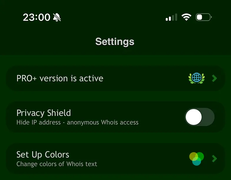 I Deep Whois-appen for iOS kan du enkelt tilpasse Whois-fargetemaer enten fra appinnstillingene eller direkte fra Whois-skjermen.